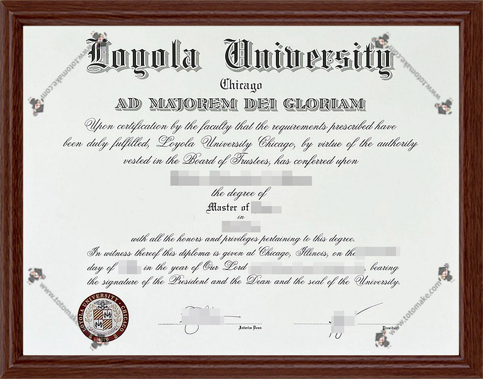 国内现目前有两种同级别和作用的认证可供留学生订购、分别为留信网留学生专业人才入库和留服学历认证。在现目前国内的市场中、两者的证明效力都大同小异,对于不能顺利毕业的学生,toto-make推荐购买:芝加哥洛约拉大学毕业证购买,Loyola学位证制作,芝加哥洛约拉大学毕业证成绩单订做。
