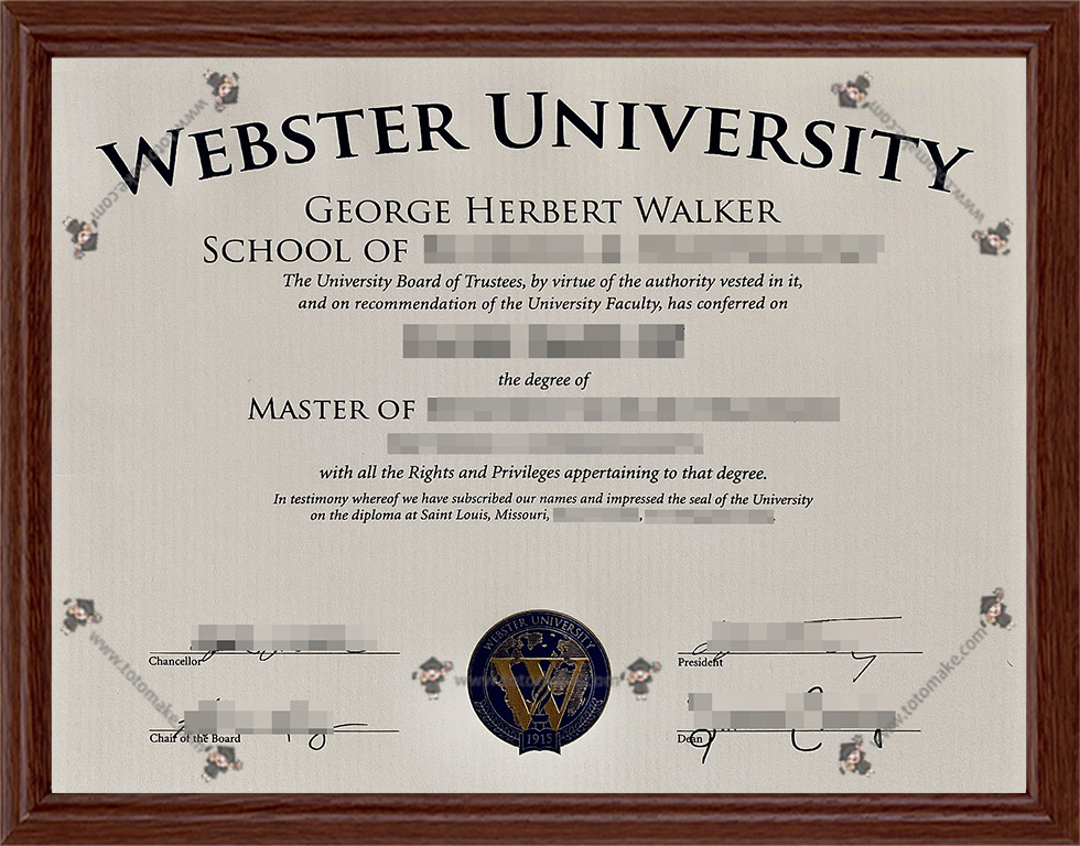 作为目前世界上最受欢迎的私立大学,韦伯斯特大学毕业证拥有着相当大的权威性,所以对于不能毕业的韦伯斯特大学学生,toto-make推荐购买:韦伯斯特大学毕业证购买,Webster学位证制作,韦伯斯特大学毕业证成绩单订做。